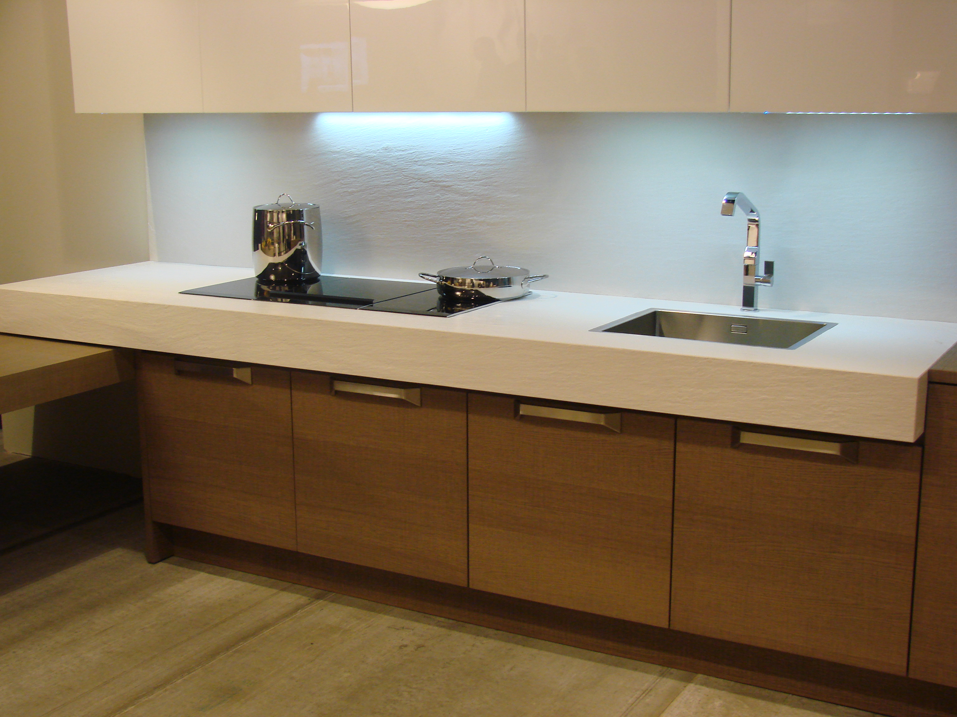 - Umělý kámen (ideální volba do designových kuchyní, nabízí širokou plaetu barev, včetně čistě bílé, až na odolnost vůči teplotě se vyrovná žule, více zde.)