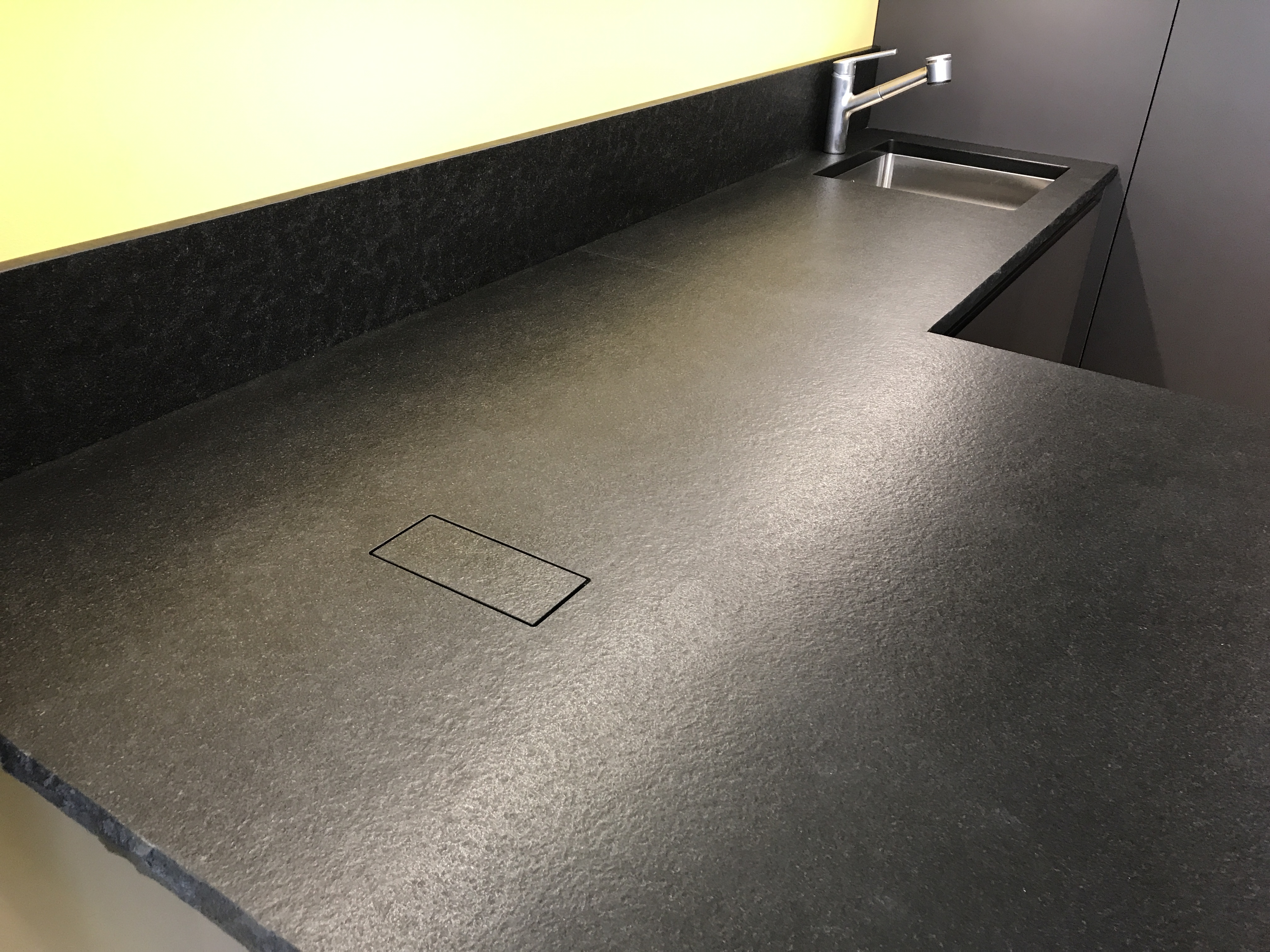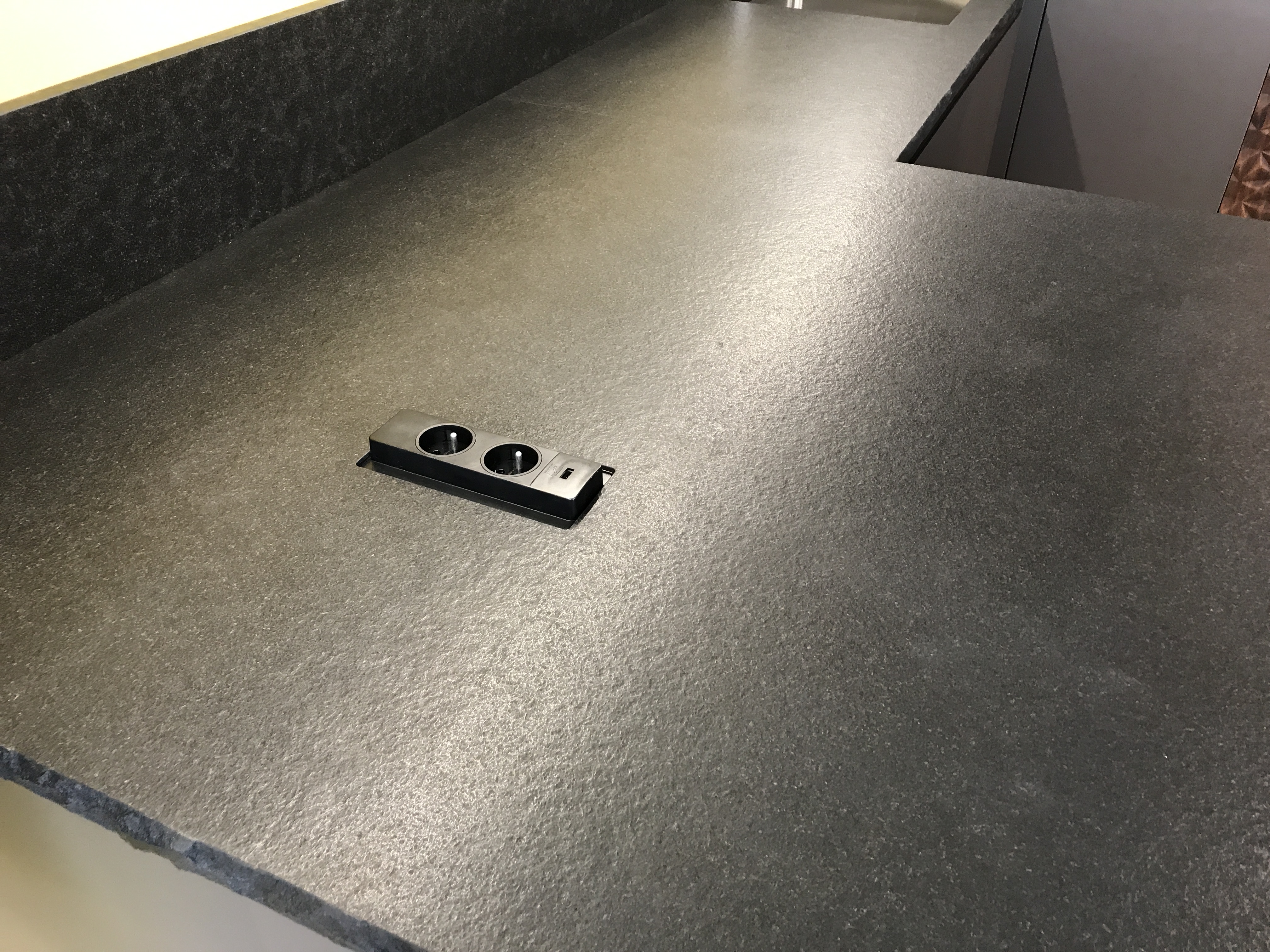 jedná se o nejčastěji osazovaný typ zásuvky v pracovní ploše. Tuto zásuvku osazujeme stejným kamenem, který je máte na pracovní desce. Vzniká tak ucelený vzhed bez rušivých prvků.